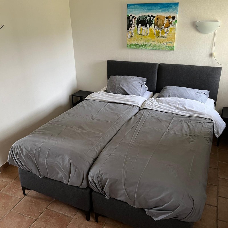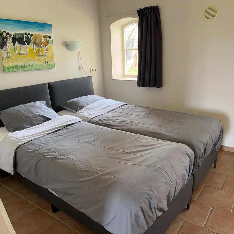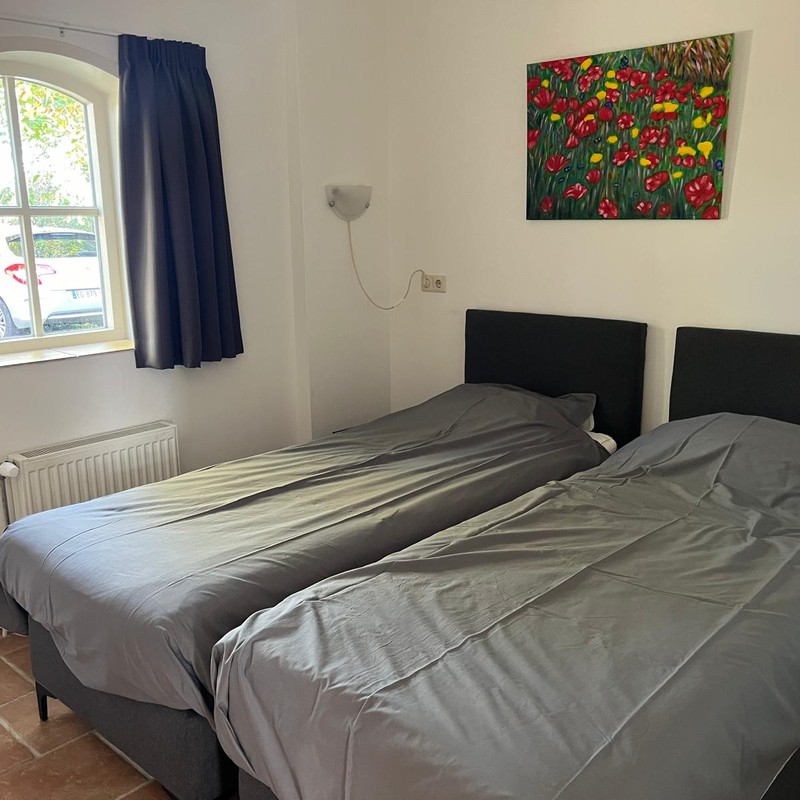 Er zijn in totaal drie appartementen. Een van deze appartementen is volledig gelijkvloers. Dit appartement biedt ruimte voor 3 personen. Het bevat 2 slaapkamers, een tweepersoonskamer en een eenpersoonskamer, en een badkamer voorzien van een douche.. De bedden in de tweepersoonskamer kunnen worden gescheiden of als tweepersoonsbed gebruikt. De andere twee appartementen bieden ruimte voor 4 personen. Beide appartementen hebben twee slaapkamers, waarvan één op de begane grond en de andere, grotere, op de eerste verdieping. De bedden in beide kamers kunnen worden gescheiden of als tweepersoonsbed worden gebruikt. De badkamer op de begane grond is voorzien van een douche.